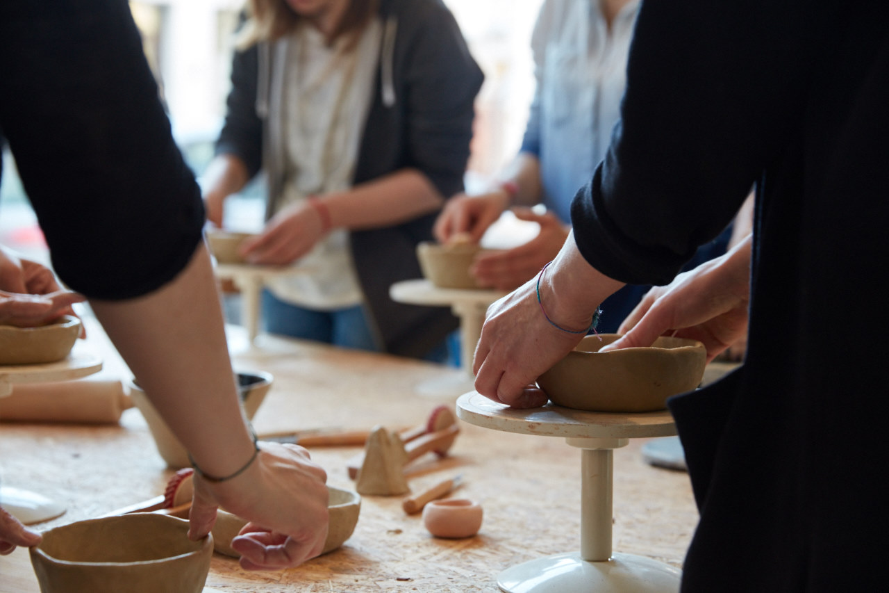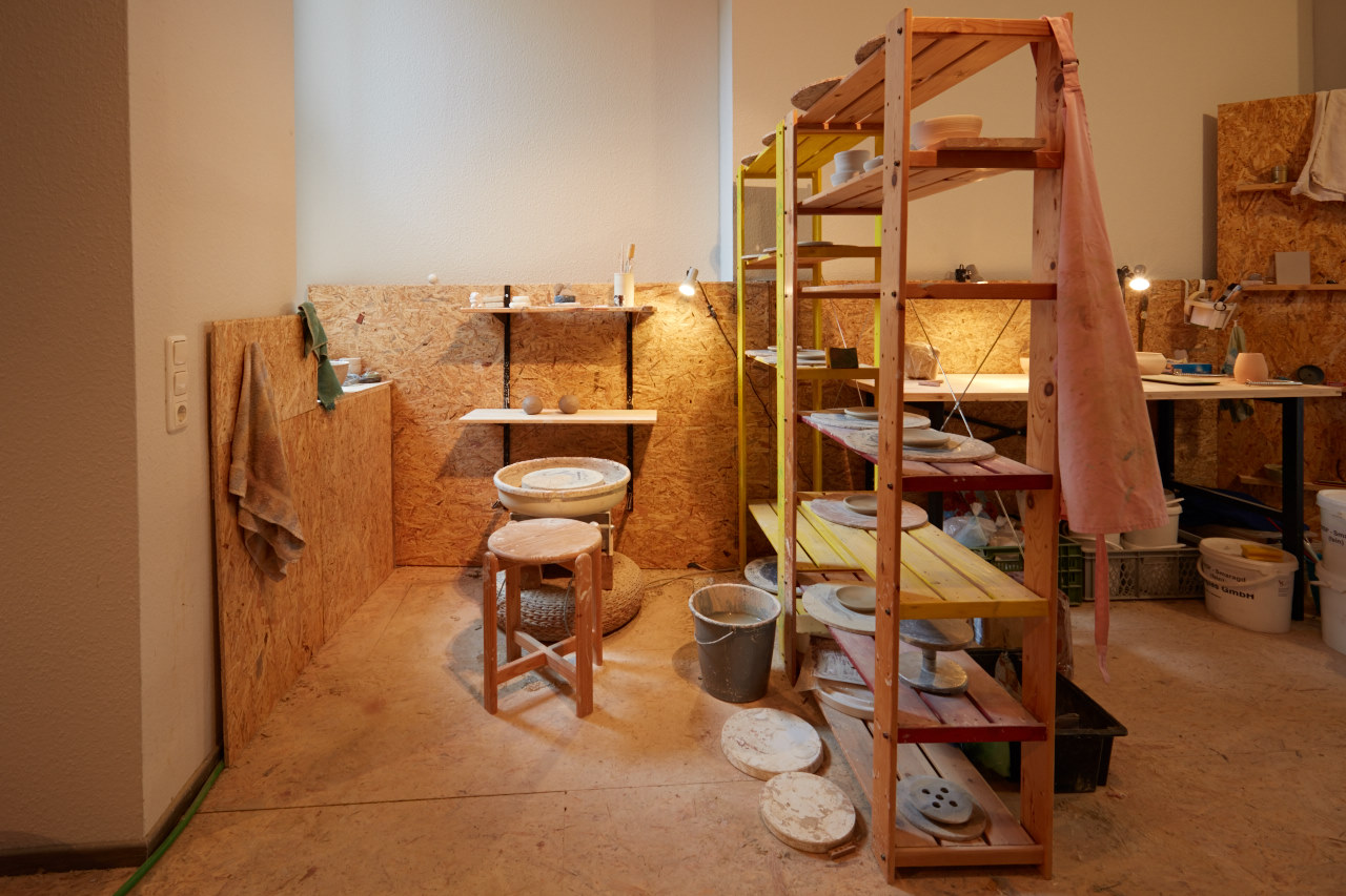 Das Keramikstudio Hartmud bot für drei Monate verteilt 6-7 Töpferkurse für die Fechenheimer Bürger*innen an und bespielte die Ladenfläche als Töpferatelier.